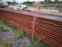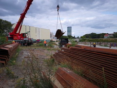 Spundbohlen Stahltraeger Lieferung Bauvorhaben Elbe Bruecke Coswig 043 -  12.06.2018  09:13:15  Uhr
